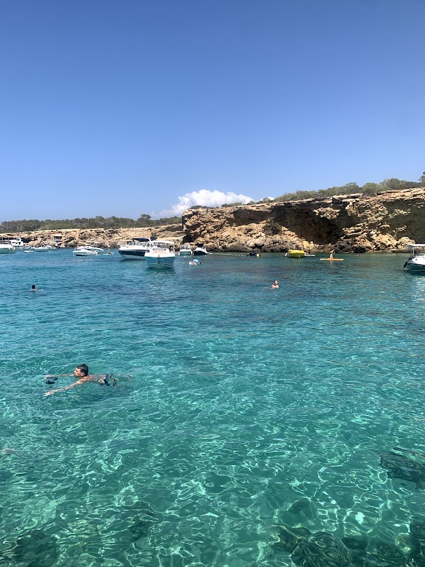 If you head over to the right of Cala Conta, you will reach “Embarcadero de Ses Roques” where you can jump off the rocks into clear turquoise water. We decided to rent jet skis and explored the bay and surrounding islands.