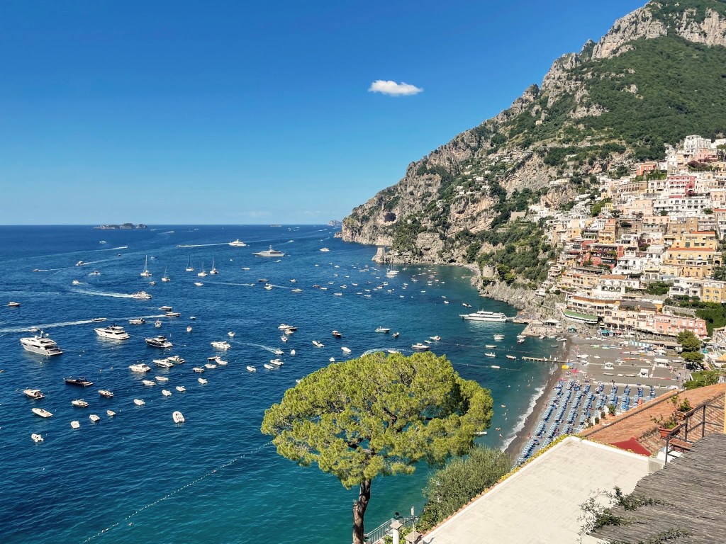 I would recommend staying in Praiano, a cute little town about a 20 minute bus ride south of Positano. It’s not very touristy compared to many towns on the Amalfi Coast, and has fabulous restaurants, beaches and bars. Other lovely, less touristy destinations include Ravello, Atrani, Maoiri & Minori.